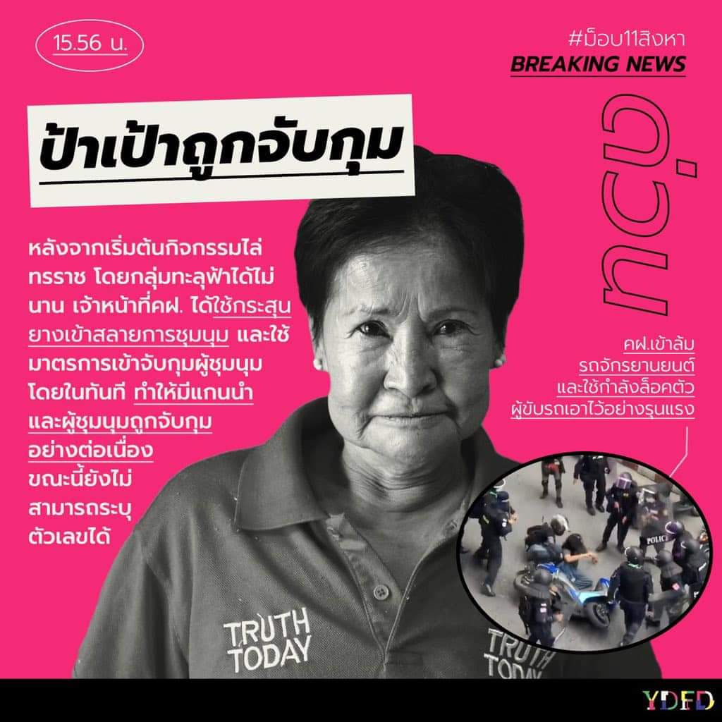 ทนายราษฎรเผย ป้าเป้า เจอข้อหาหนัก ทำร้ายเจ้าพนักงาน ตำรวจคุมตัว 2 คืน ก่อนส่งศาล 13 ส.ค.